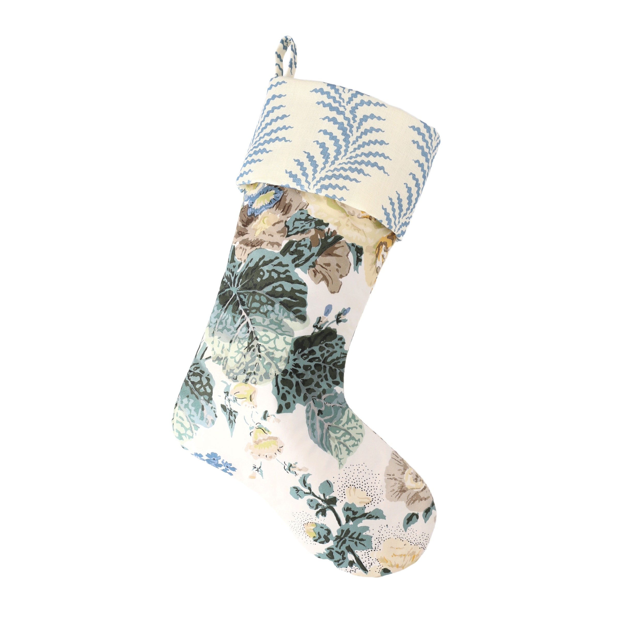 Althea Citron Stocking with Scrolling Fern Azure Cuff